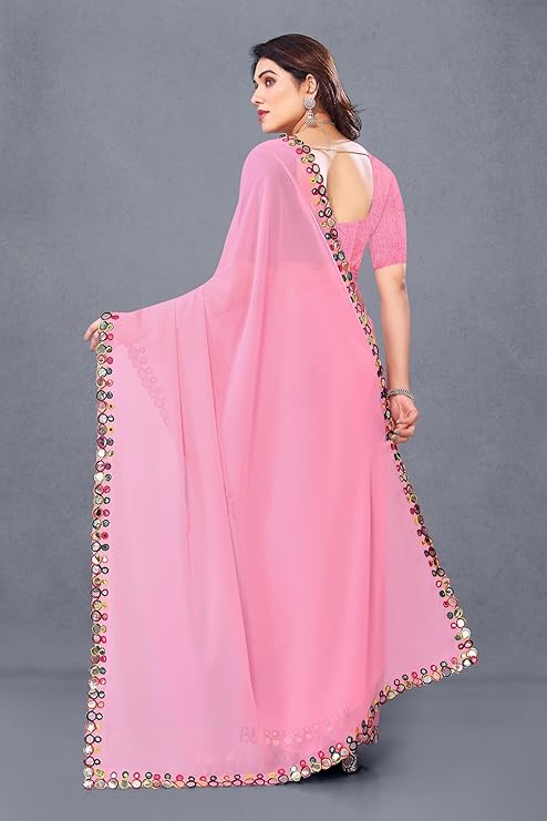 Ethnic Motifs Embroidered Pure Georgette Saree