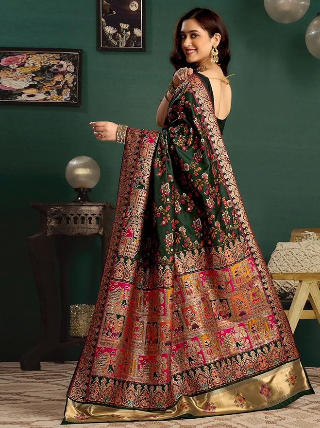 Dark Green Banarasi Saree with Blouse Dark Green